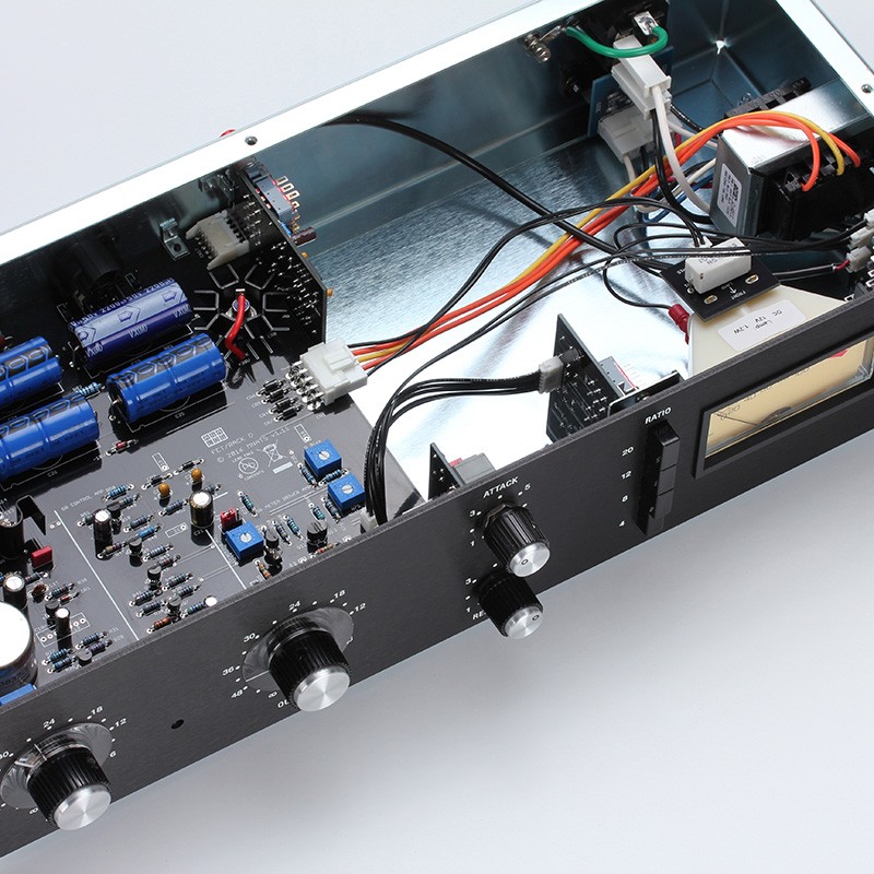 This revision covers the REV B thru E units. Most current reissues are based on this revision. Revisions C-E had a black front panel while the Rev B retained the silver and blue stripe panel. Changes were made to the stage and line amps so a bipolar transistor was used as the first active component. Low noise, or “LN” circuitry, was added to this and all future revisions. Like the Revision A, the input uses an O-12 transformer and the signal is attenuated at the input with a 600Ω T-pad. The output is class A, utilizing a 5002 output transformer. This is widely considered to be the most classic FET compressor sound.