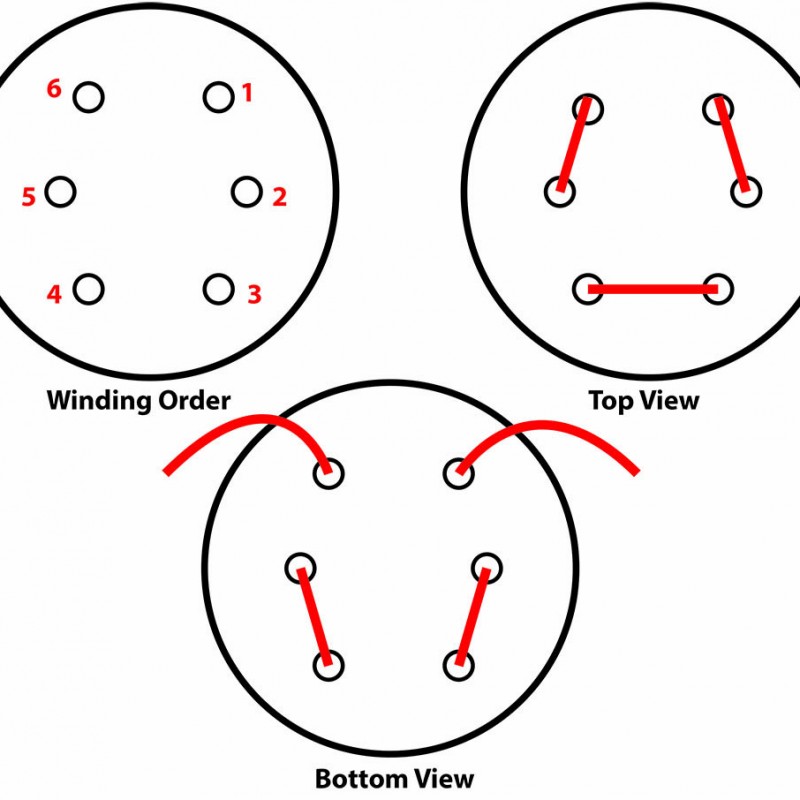 Inductors are not supplied with the copper wire you must thread through the holes to complete the full inductor. Inductor threading pattern is shown in the second and third image above. We used 30 AWG tinned copper wire.